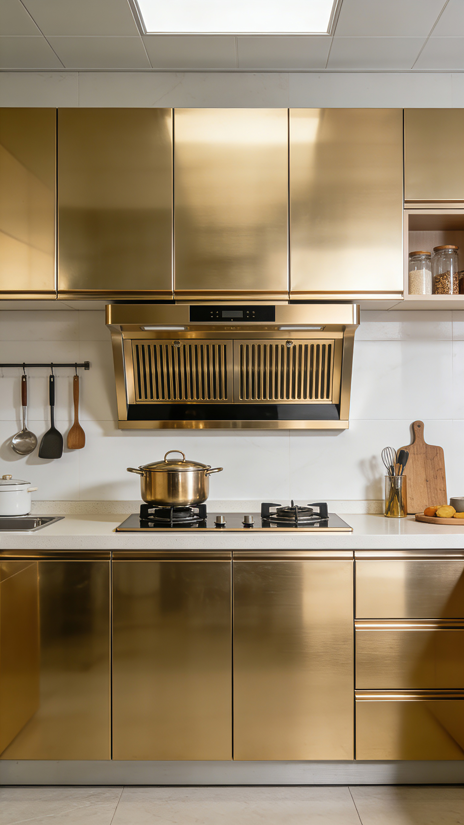 古铜色、玫瑰金和银灰色不锈钢橱柜面板具有诸多特点。古铜色不锈钢橱柜面板散发着复古而优雅的气息,能够为厨房增添一份沉稳与大气,仿佛将时光凝固在古老的岁月中。玫瑰金不锈钢橱柜面板则充满了浪漫与时尚的元素,其柔和的色调可以营造出温馨而甜美的厨房氛围,让人心情愉悦。银灰色不锈钢橱柜面板以其简洁、现代的风格,与各种装修风格都能融合,给人一种干净、利落的感觉,是现代简约风格厨房的绝佳选择。